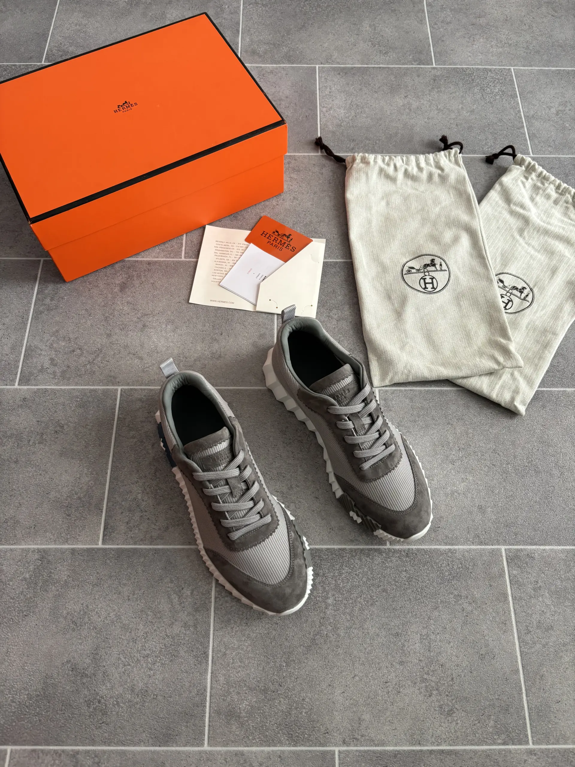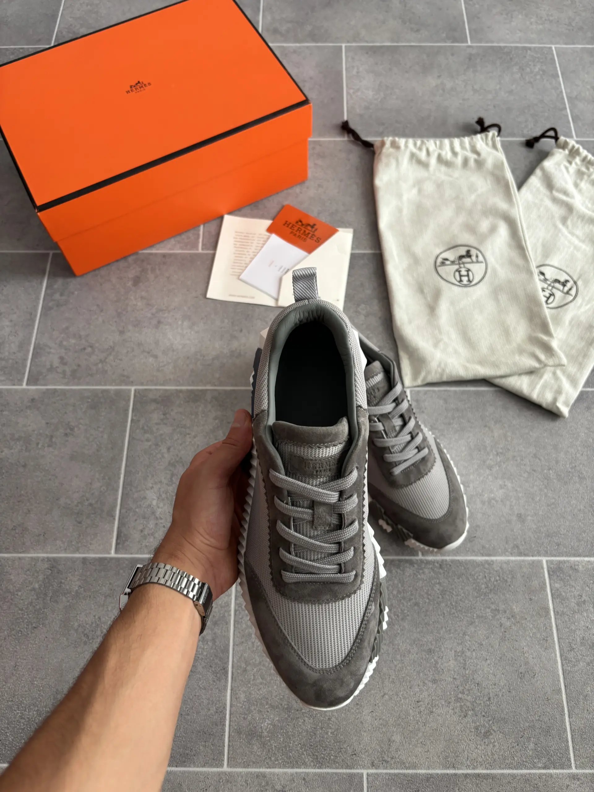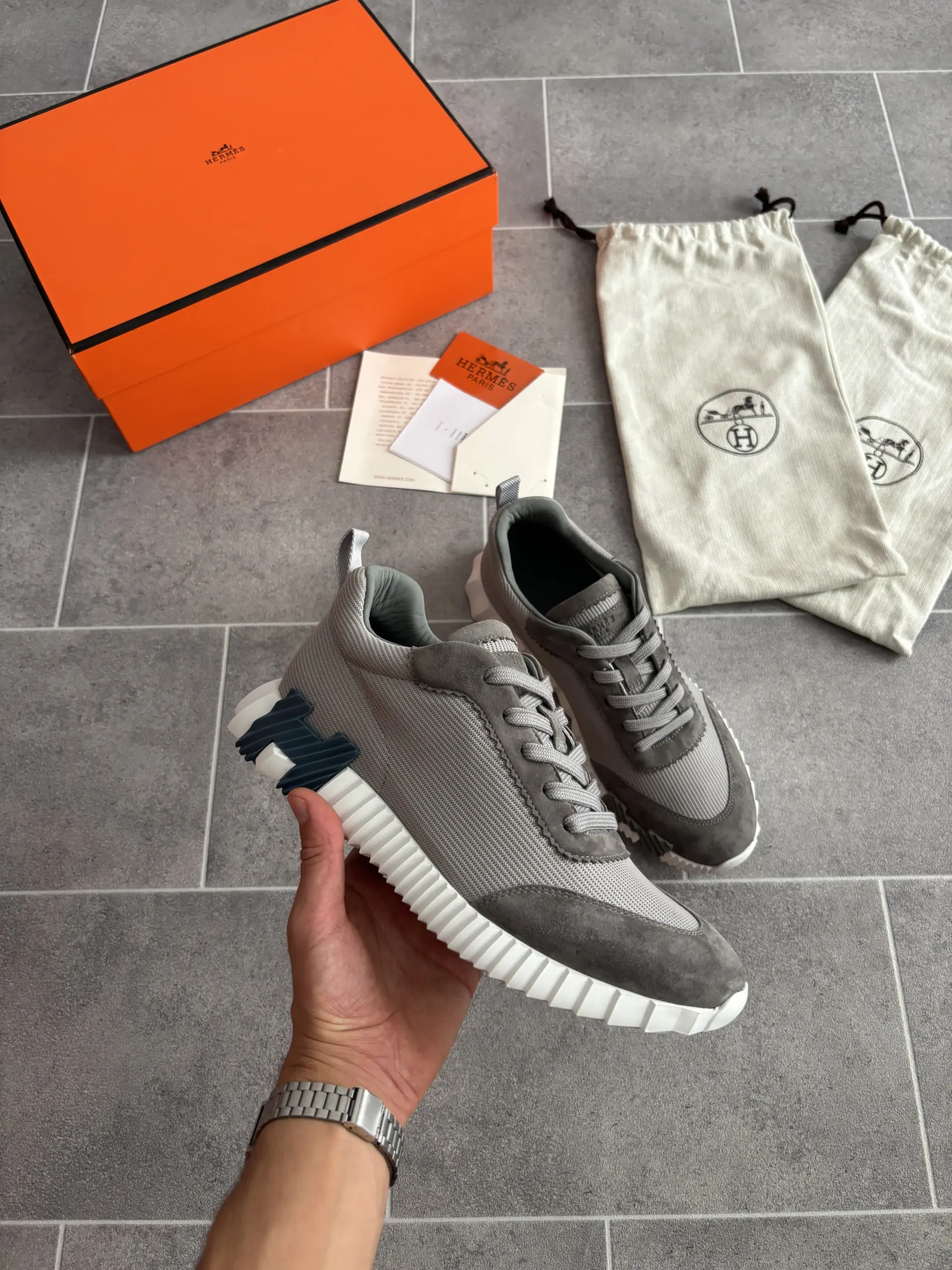 Hermes Bouncing Sneaker en Gris avec H Bleu