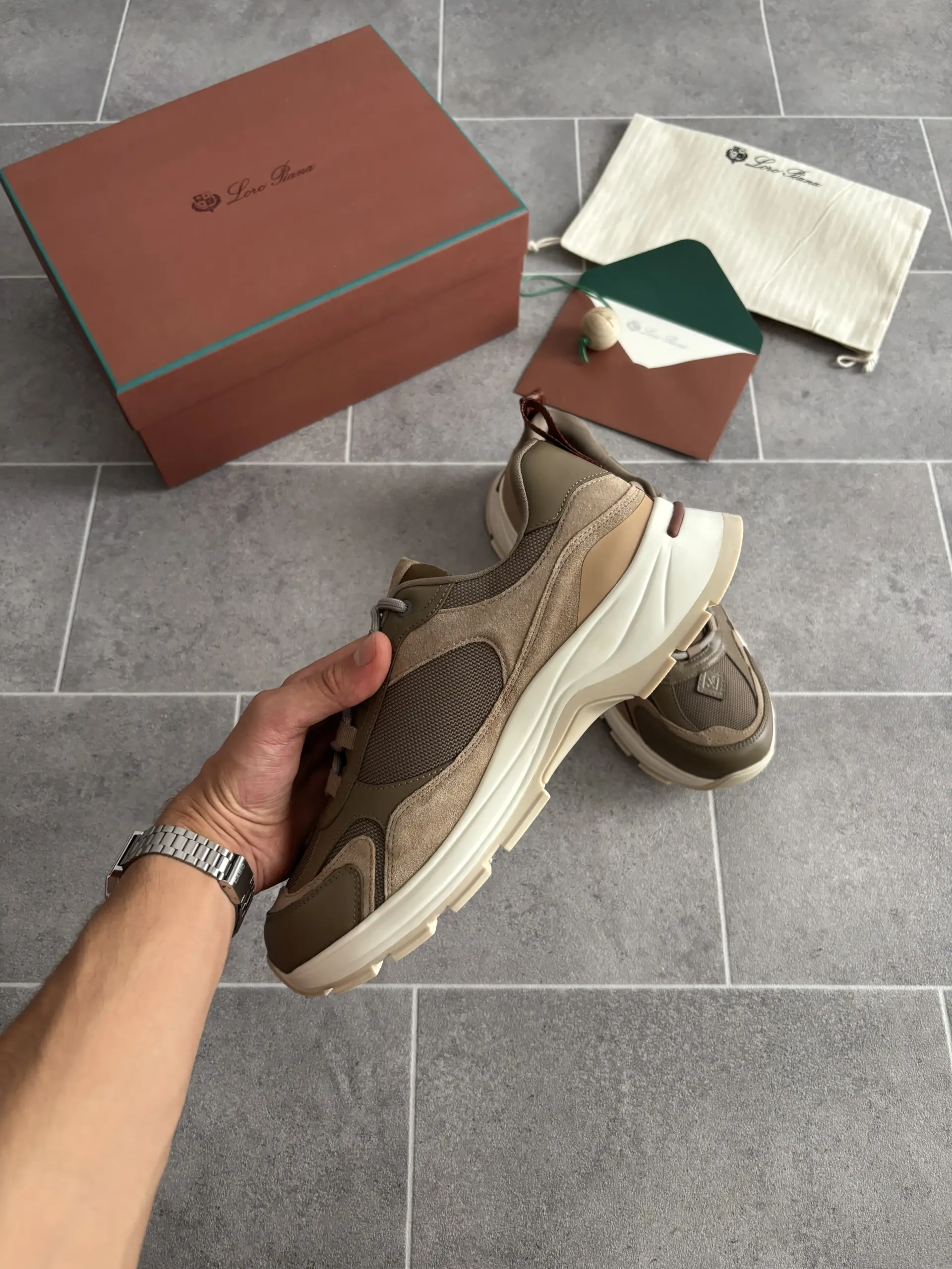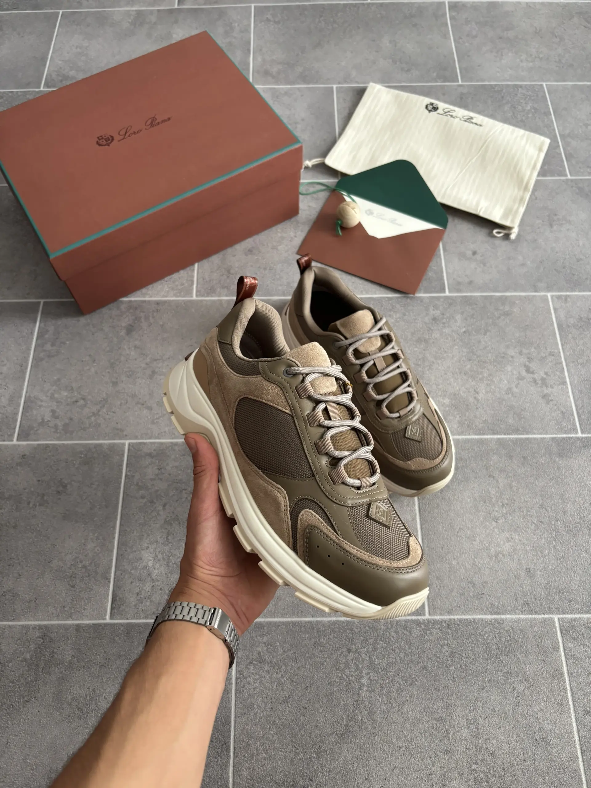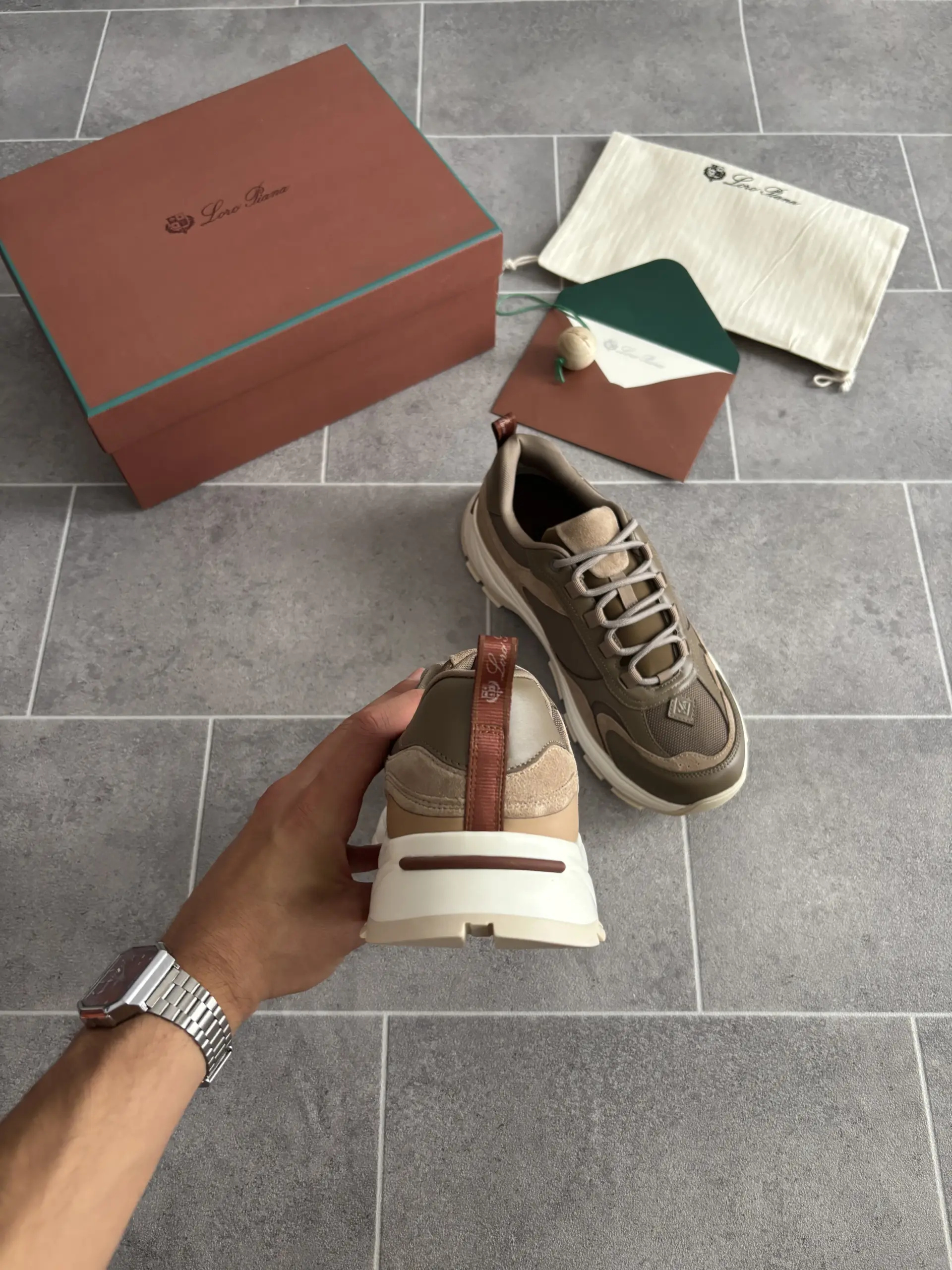 Loro Piana Cairn Walk Sneaker en Vert et Marron