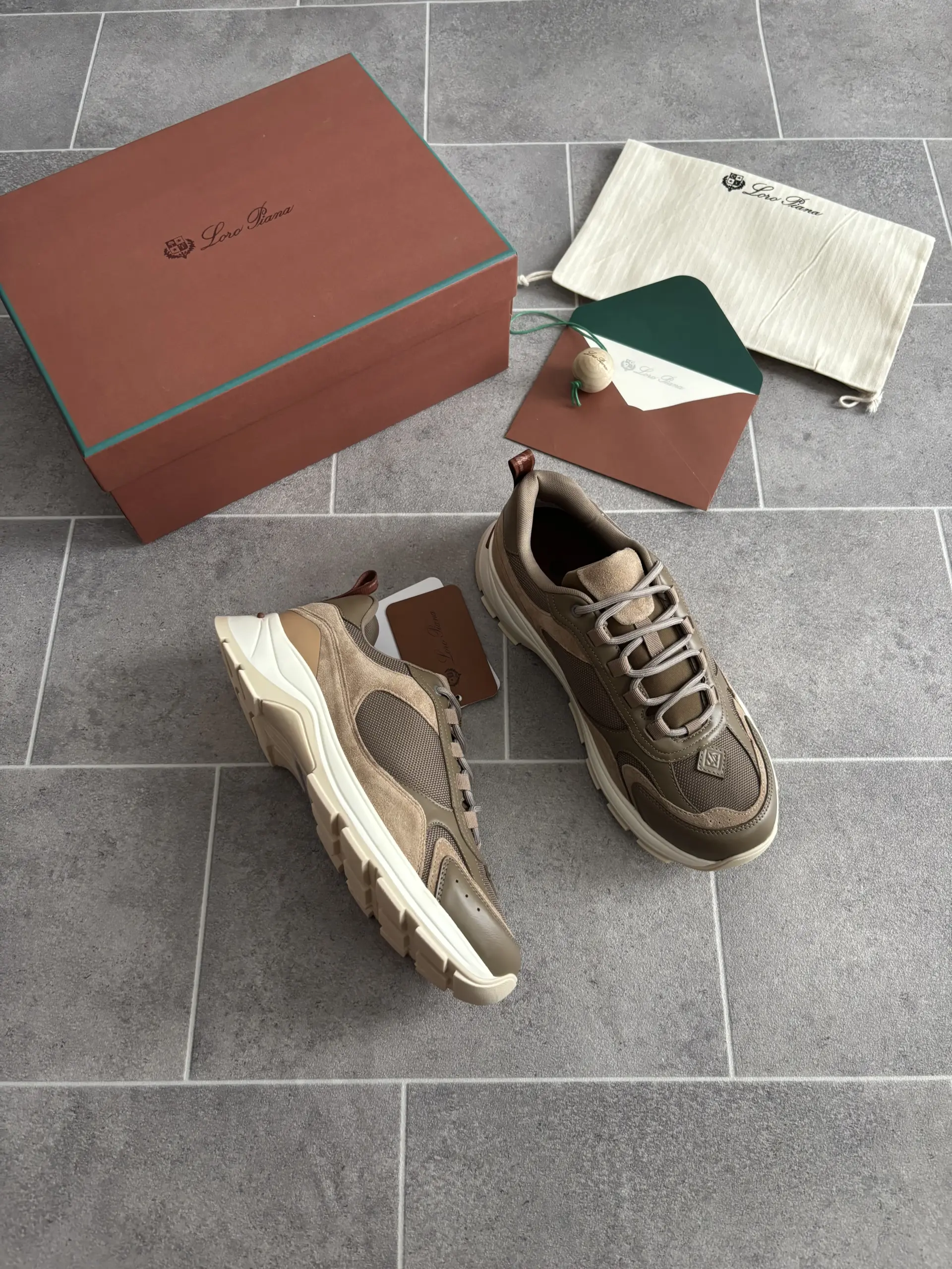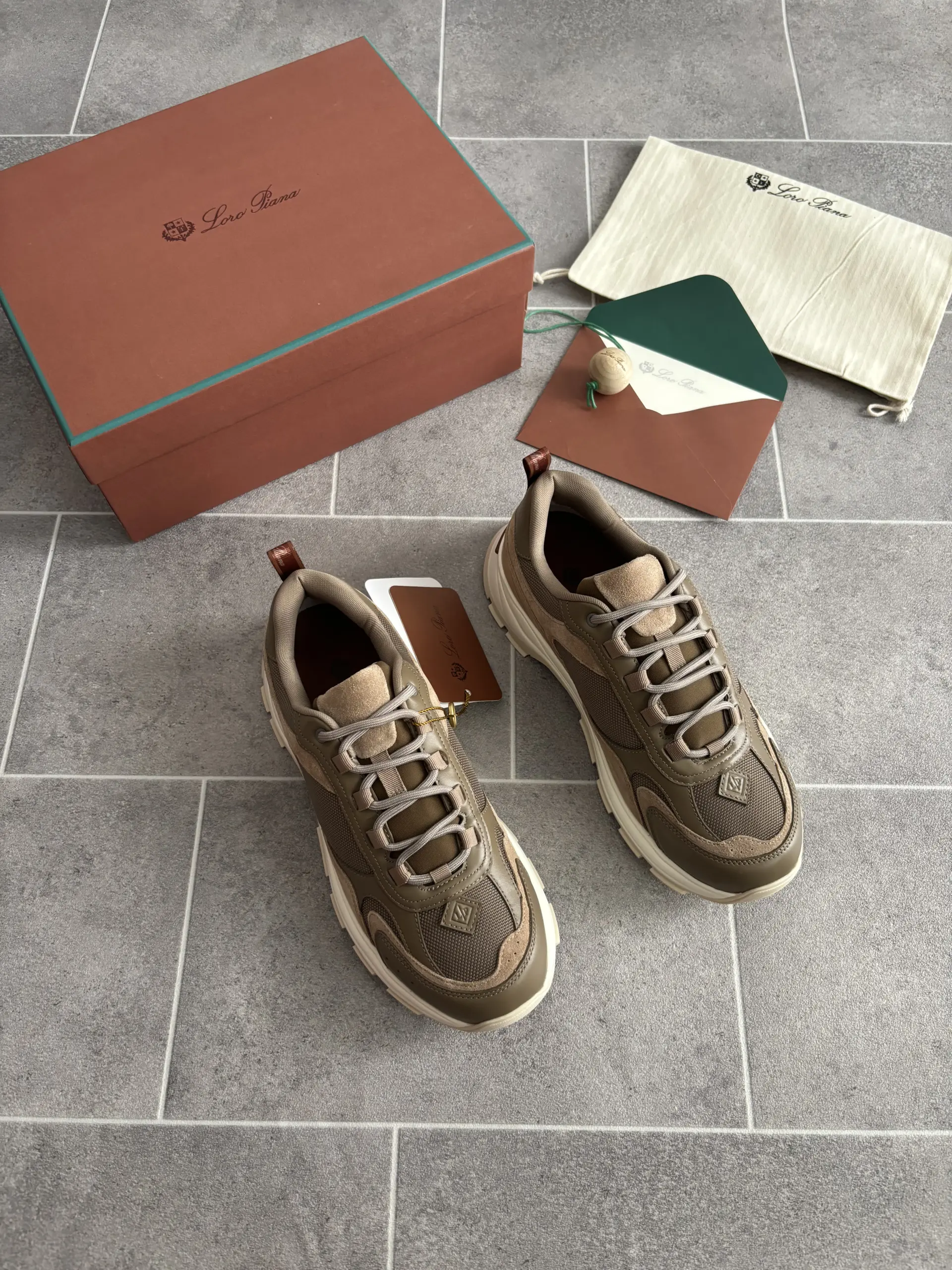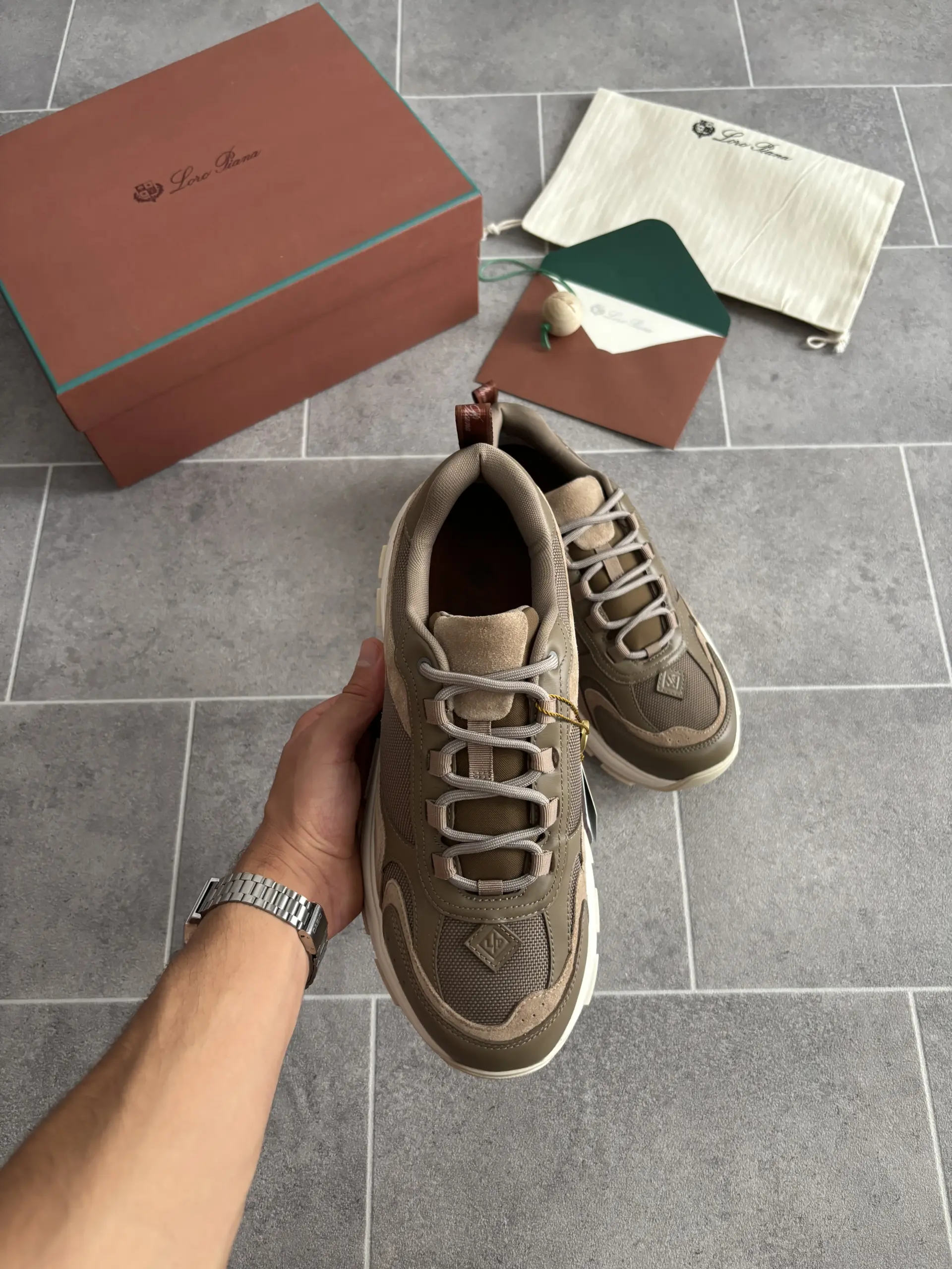Loro Piana Cairn Walk Sneaker en Vert et Marron